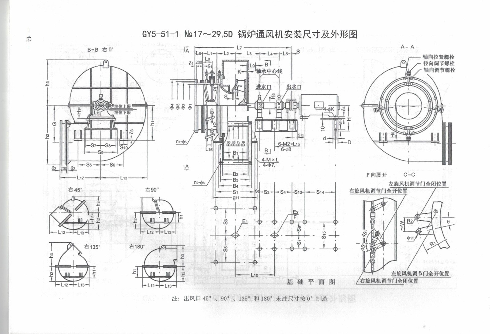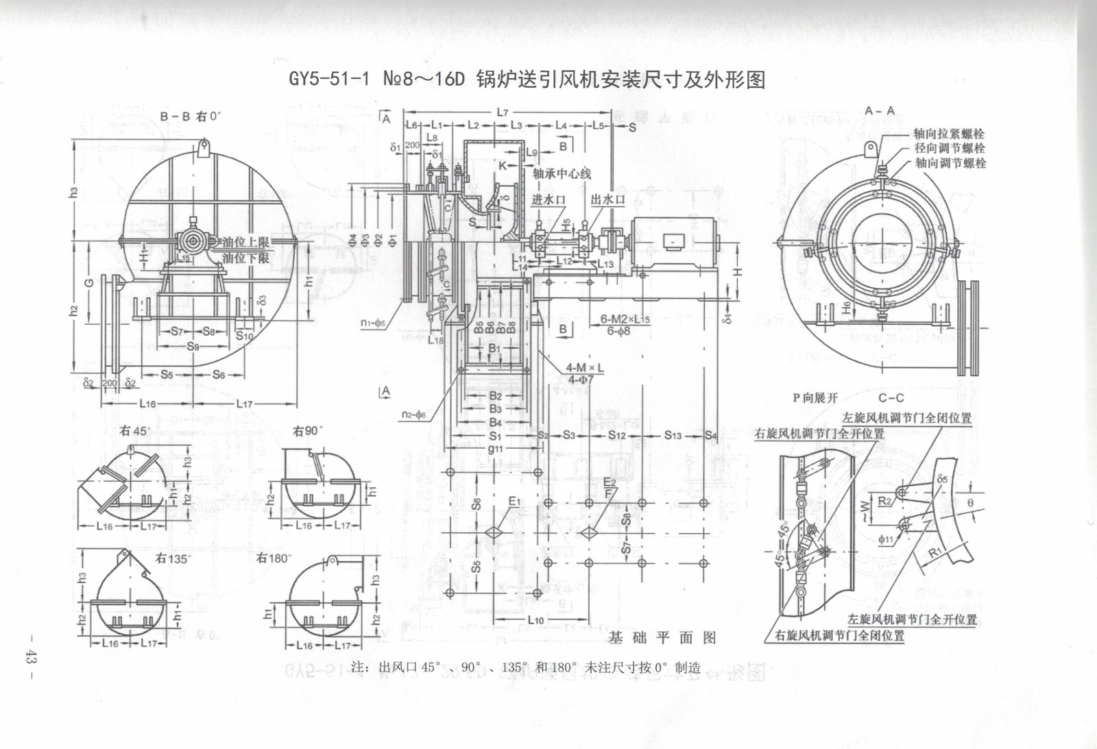 GY5-51型鍋爐送引風機主要是用于火力發電廠2t/h~670t/h蒸汽鍋爐的送引風系統,也滿足了流化床爐高壓頭性能參數之需求。該系列風機也可用于除塵、礦井通風及一般通風系統。高效工況范圍寬,機號排列密集,容易選到高效工況點。