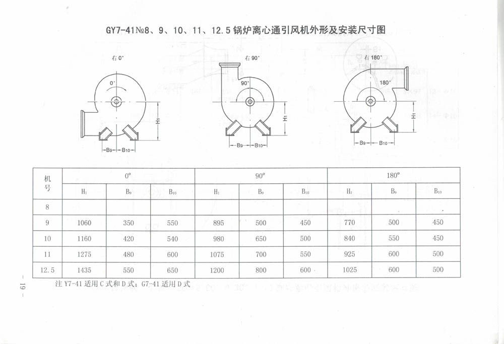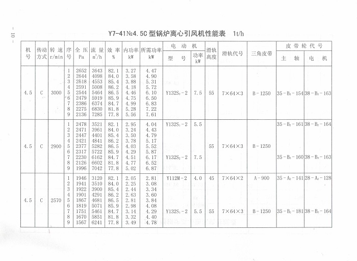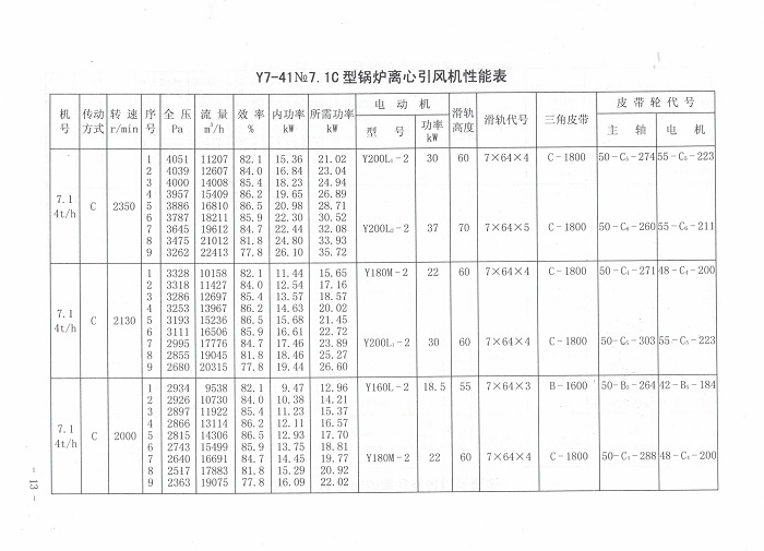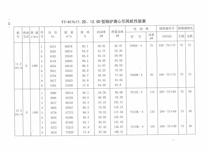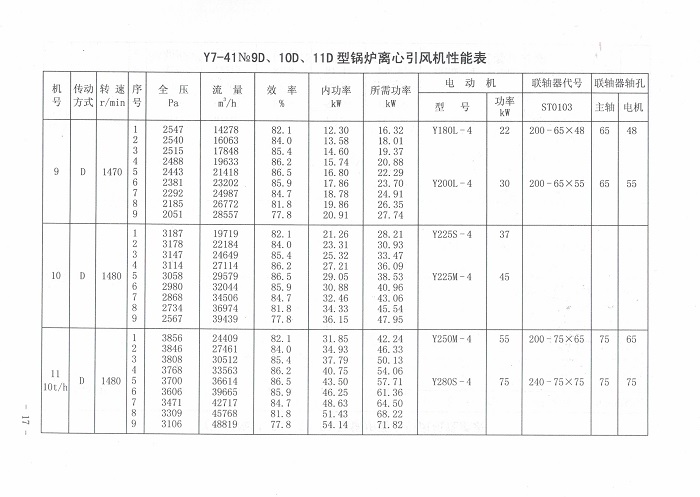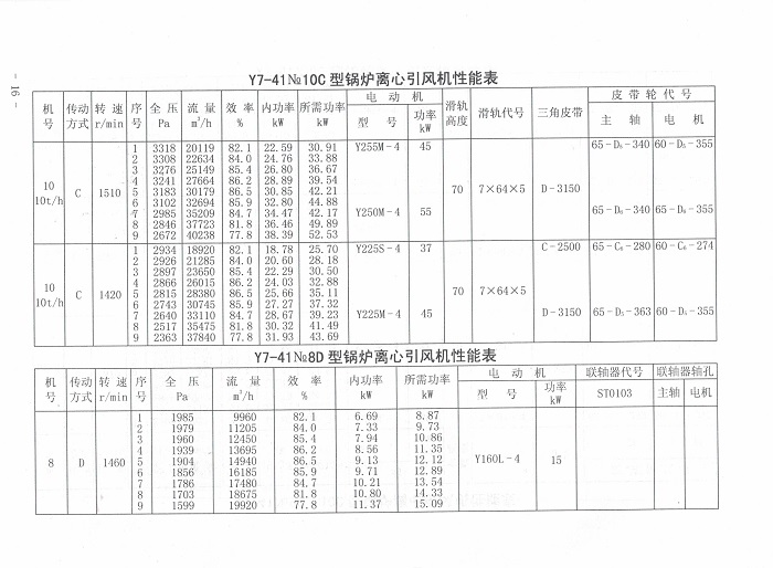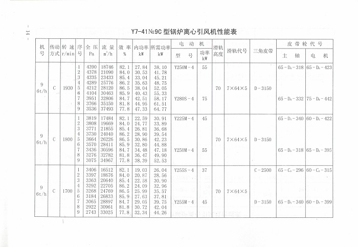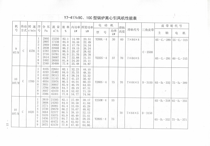 G、Y7-41型工業鍋爐通引風機主要特點是:風機效率高、全壓高、噪音底、性能曲線平坦,經濟使用去寬廣,并采用后向板型葉片,風機在最佳工礦點的全壓內效率為86.5%噪聲指標(比A聲級)LS=11.5分貝,該兩項指標與國內目前現有的各種工業鍋爐通引風機相比均為最好水平,該風機如達到其它型號風機相同的流量、壓力,風機主軸轉數可大幅度降低(一般降低200-800轉/分),這樣風機噪聲顯著降低并運轉平穩可靠。