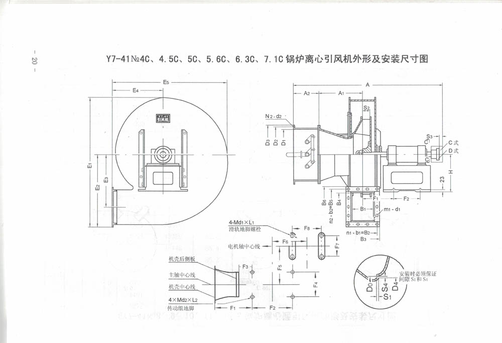 通風機輸送的介質為空氣,最高溫度不得超過80℃,引風機輸送介質為煙氣,在相同的流量下,該引風機比原有的Y5-47等鍋爐引風機的壓力可提高30%以上,因此,特別適合采用螺旋管道和配多管除塵器的1-20t/h工業鍋爐。