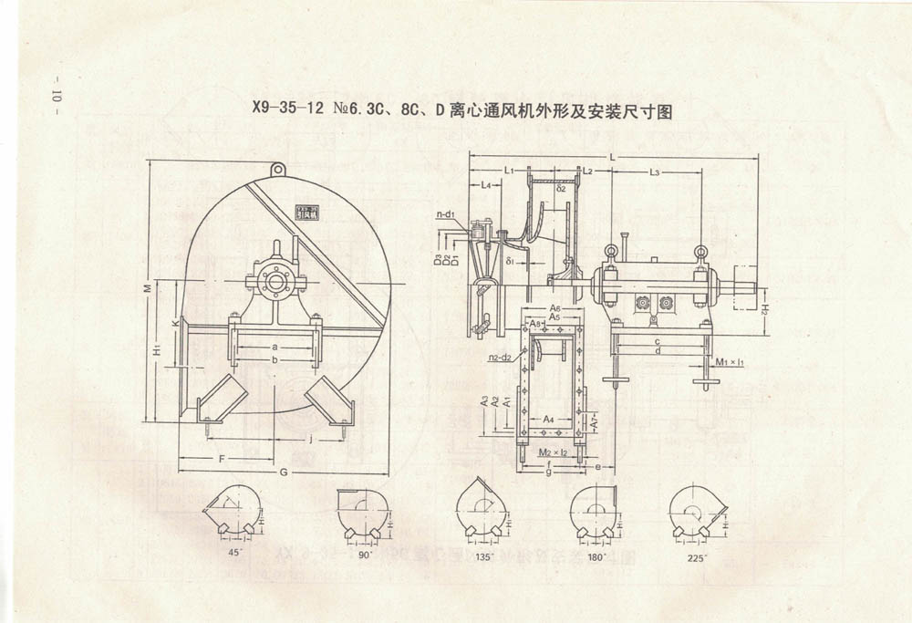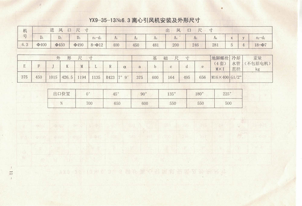 本風機適用于一般通風和鍋爐送風,凡進氣條件相當,性能相近者均可選用。性能條件:溫度t=170/250℃,密度ρ=0.745kg/m3,大氣壓力P=101325Pa。