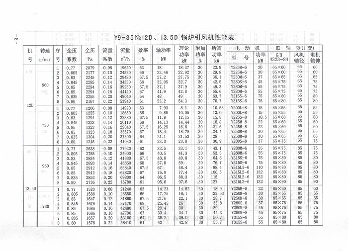 9-35、Y9-35型單吸鍋爐通引風機,主要適用于2t/h-230t/h蒸汽鍋爐的通引風系統。通風機的基本型號為9-35,引風機的型號為Y9-35。