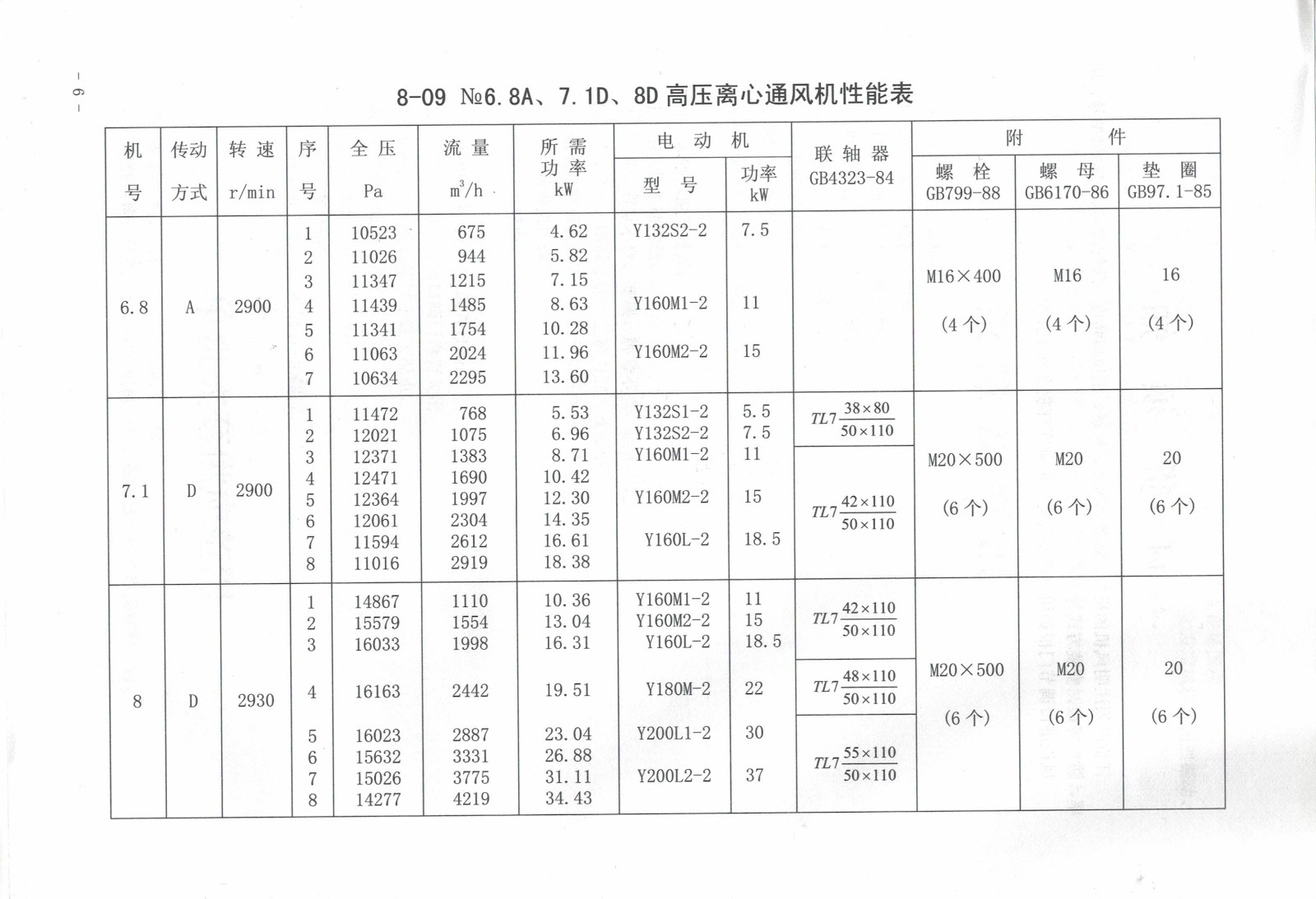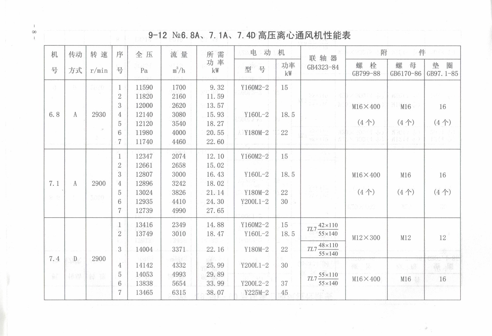 本風機是與熔化率為1、2、3、5、7t/h化鐵爐配套的專用風機,也可以作為各種熔爐、鍛冶爐鼓風和輸送空氣及無腐蝕性、不自燃、不含粘性物質之氣體,其它性能相近者亦可選用,但輸送介質的溫度不得超過80℃,介質中所含塵土及硬質顆粒物不大于150mg/m3。性能參數條件:溫度t=20℃,密度ρ=1.2kg/m3,大氣壓力P=101325Pa。
