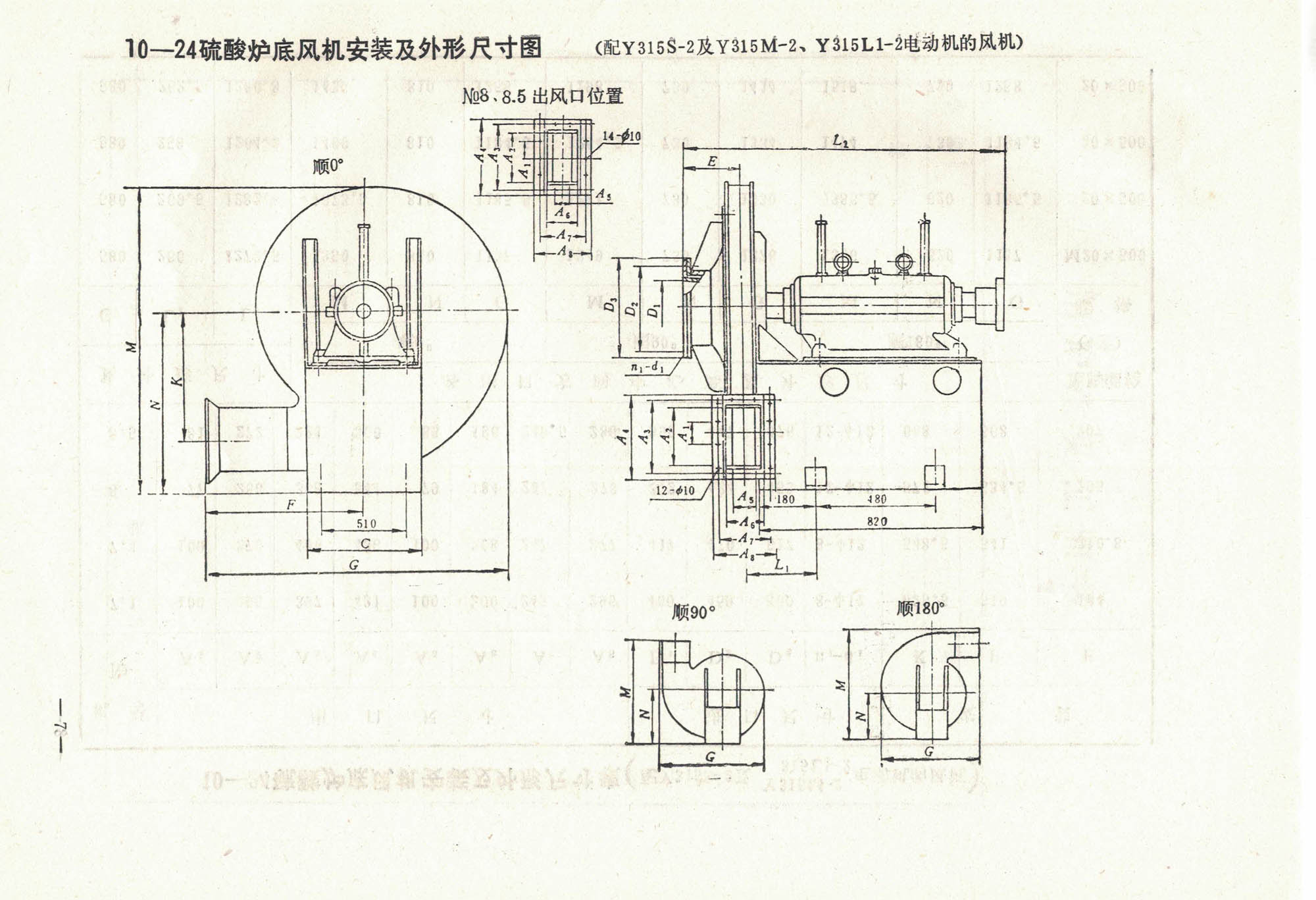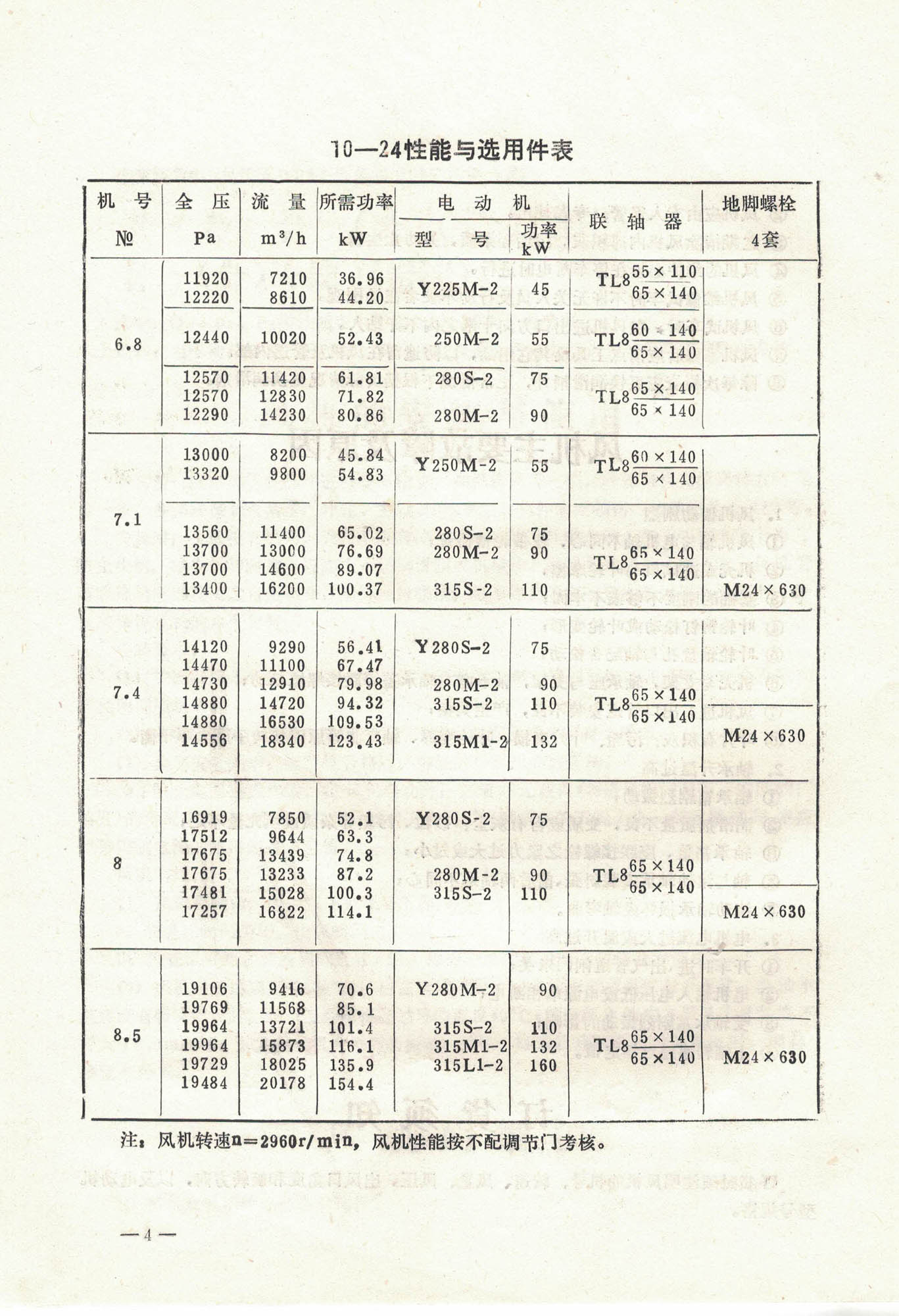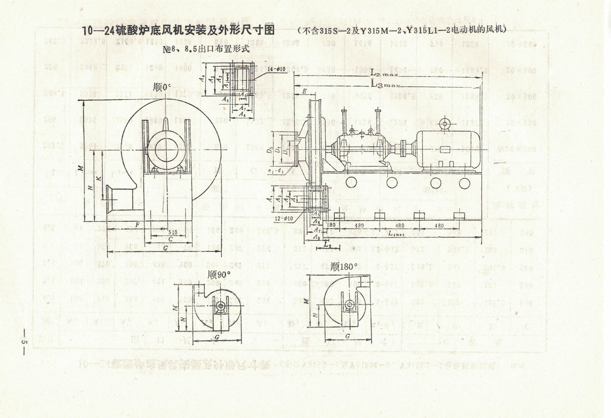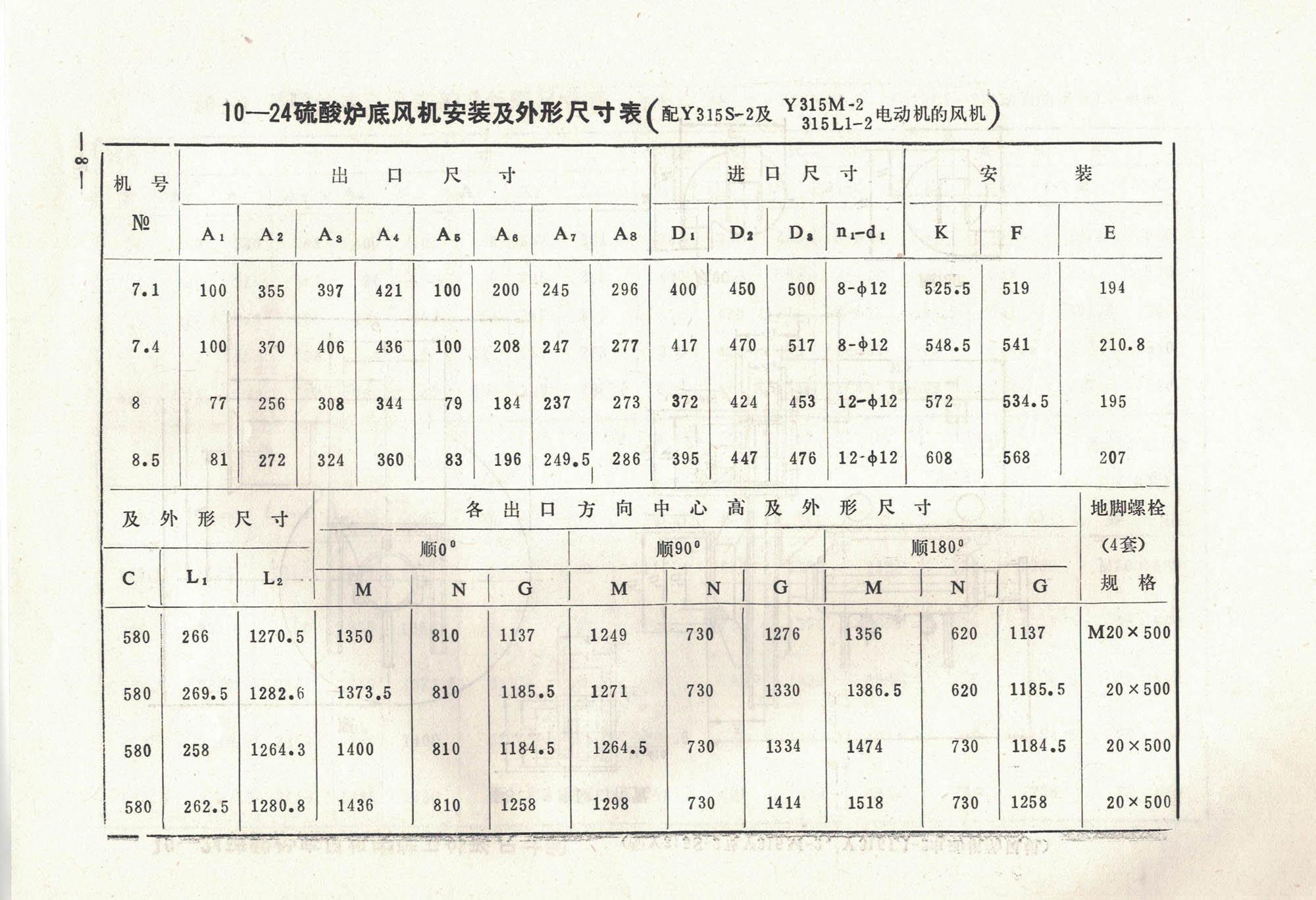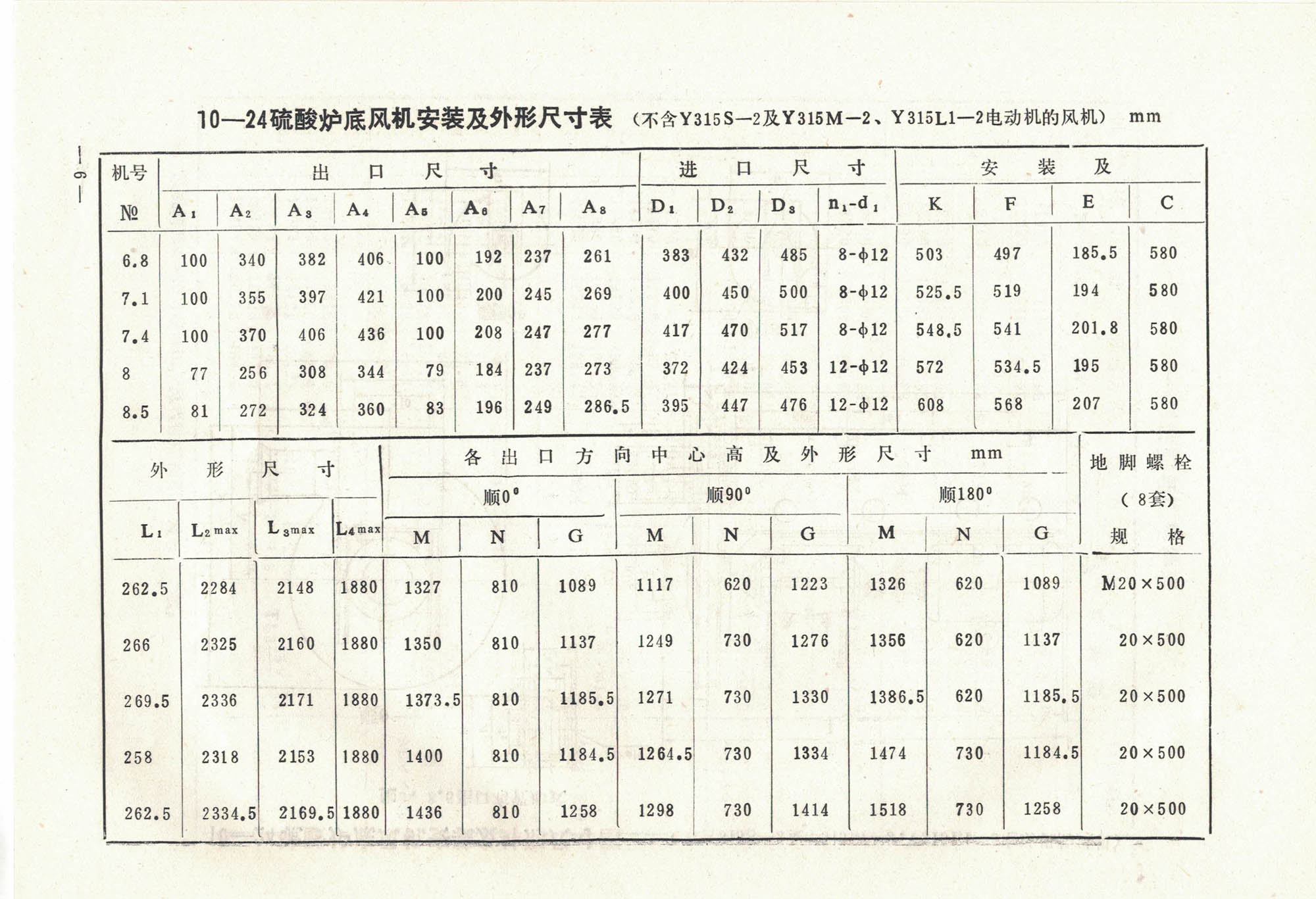 該機專用年產40000t硫酸爐底通風及一般用于鍛冶爐及高壓強制通風,并廣泛用于物料輸送。介質溫度不超80℃。介質所含的塵土及硬質細顆粒不大于150mg/m3。性能參數條件:溫度t=20℃,密度ρ=1.2kg/m3,大氣壓力P=101325Pa。