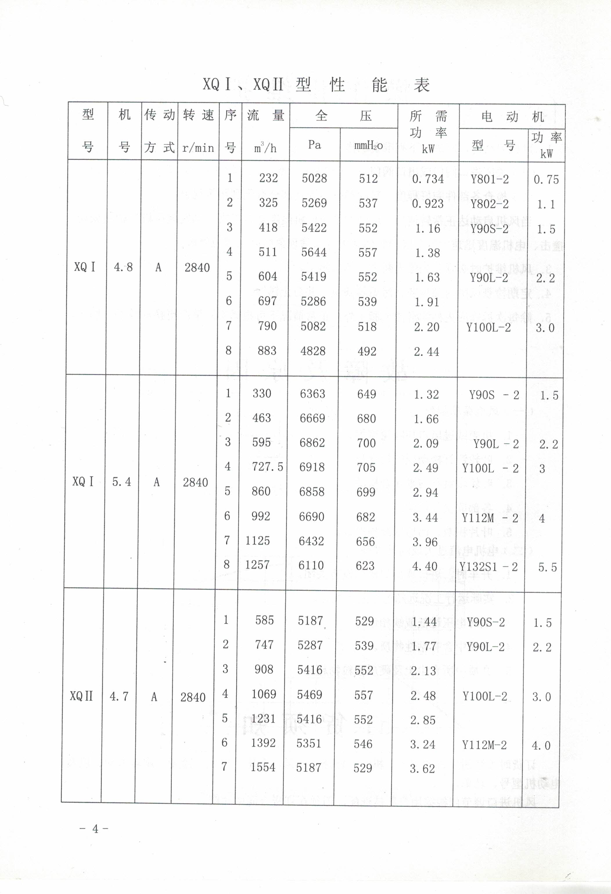 XQⅠ型、XQⅡ型風機均為單吸入,傳動方式為A式。